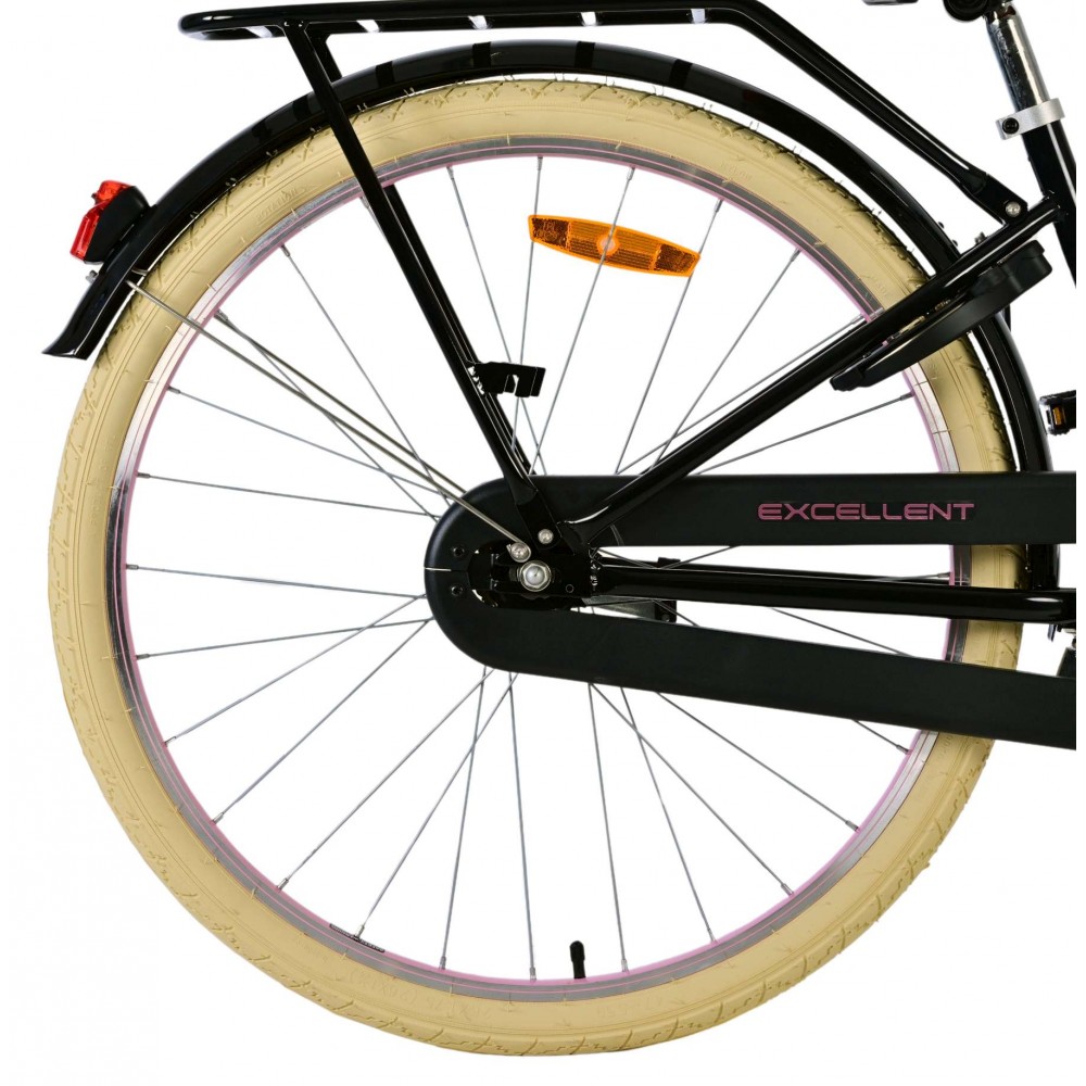Veiligheid staat voorop! Daarom heeft deze gave fiets een handrem en terugtraprem en een gesloten kettingkast. Daarnaast heeft de fiets reflectoren voor en achter en een leuke bel. Ook aan het comfort is gedacht. De mooie zwarte Volare fiets heeft een handige voordrager, een achterdrager geïntegreerd in het frame en een luxe zacht zadel. Om zo lang mogelijk van de fiets te kunnen genieten zijn het zadel en stuur in hoogte verstelbaar.