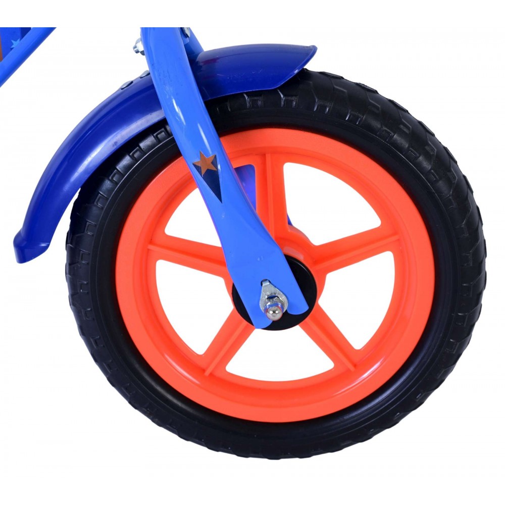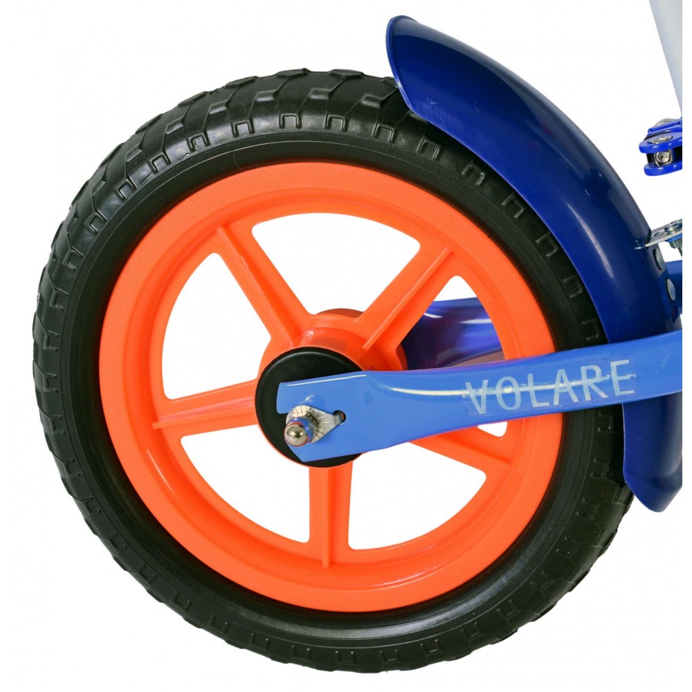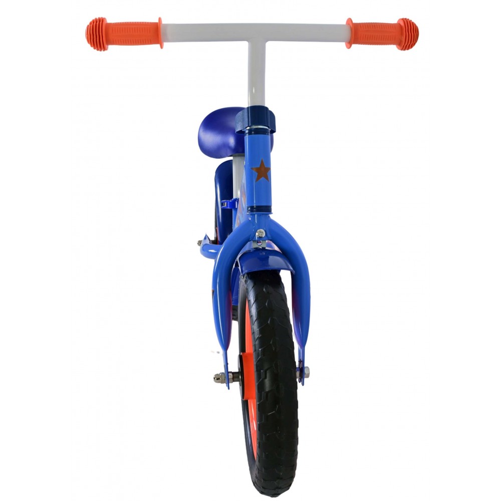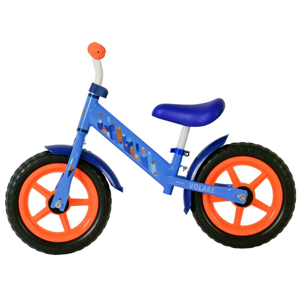 Deze stoere blauwe loopfiets is perfect voor kinderen van 1 tot 3 jaar die klaar zijn voor hun eerste avontuur op wielen. De fiets is stijlvol afgewerkt met donkerblauwe spatborden, een zadel in bijpassende kleur en opvallende oranje velgen en handvaten – een echte blikvanger!