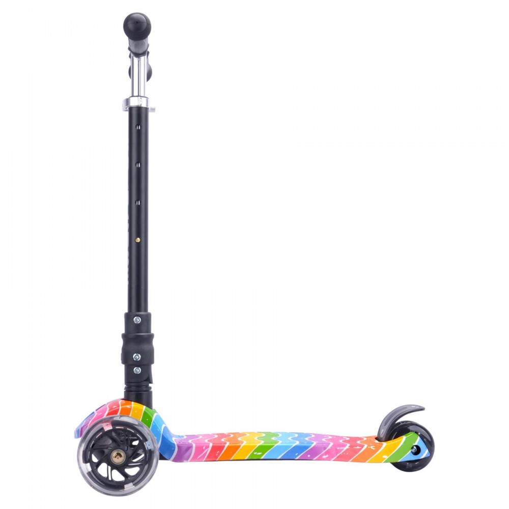 Dankzij het slimme lean-to-steer systeem leren kinderen spelenderwijs hun evenwicht te bewaren, terwijl de drie wielen zorgen voor extra stabiliteit en vertrouwen onderweg. De dubbele achterwielen zijn voorzien van heldere knipperlichten, waardoor je kind altijd goed zichtbaar is. Voor extra veiligheid beschikt de step over een stevige stomprem, waarmee afremmen eenvoudig en betrouwbaar gaat.
