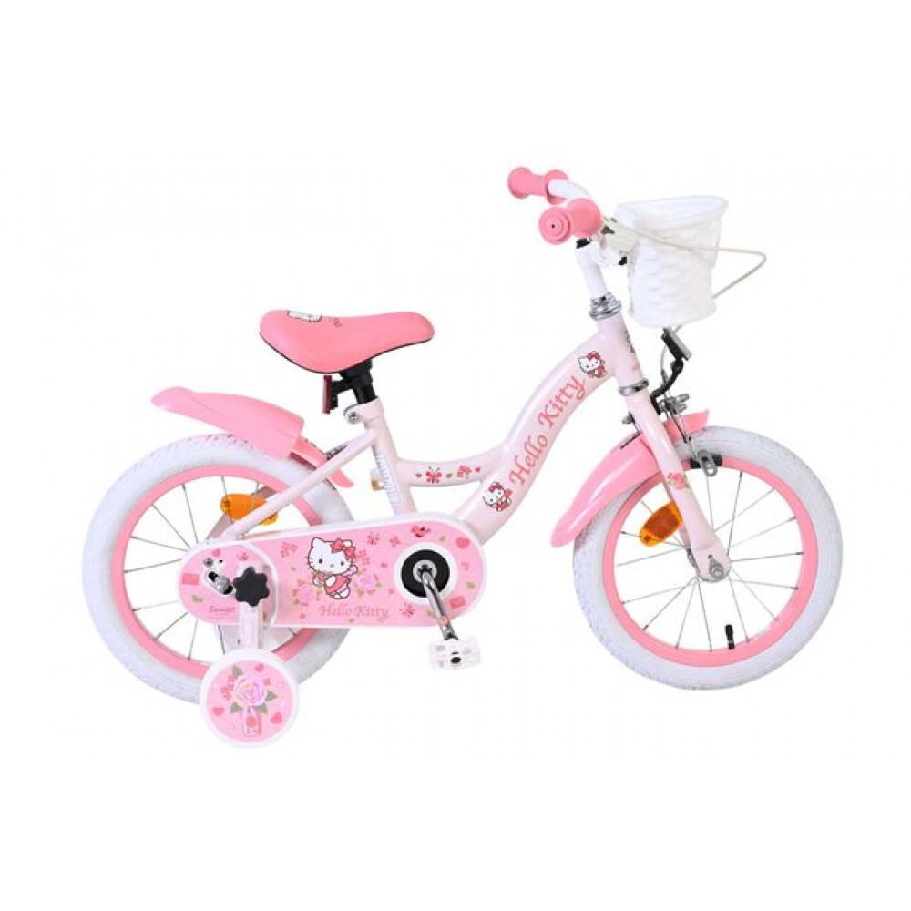 Met de Volare Hello Kitty 14 inch kinderfiets in lichtroze wordt leren fietsen een feestje. Deze vrolijke fiets is ontworpen om jonge fietsers een veilige en comfortabele start te geven, met een stabiele en kindvriendelijke opbouw.