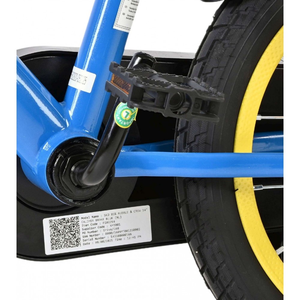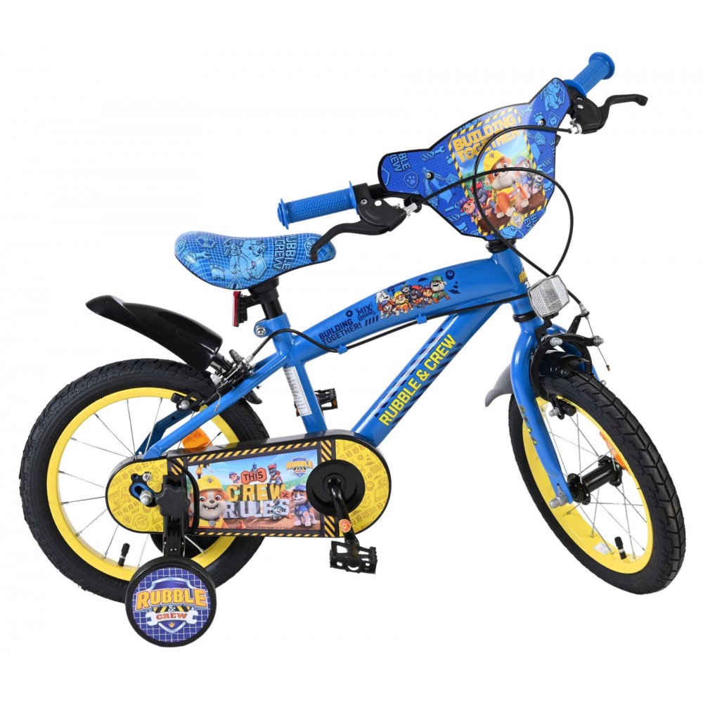 Voor jonge avonturiers die fan zijn van PAW Patrol is er de stoere 14 inch Rubble kinderfiets van Volare! Deze opvallende fiets is helemaal geïnspireerd op Rubble, de altijd vrolijke bouwpup, en staat garant voor eindeloos fietsplezier. Met coole Rubble-afbeeldingen op het frame en een stoer voorplaatje voelt elke rit als een echte missie.