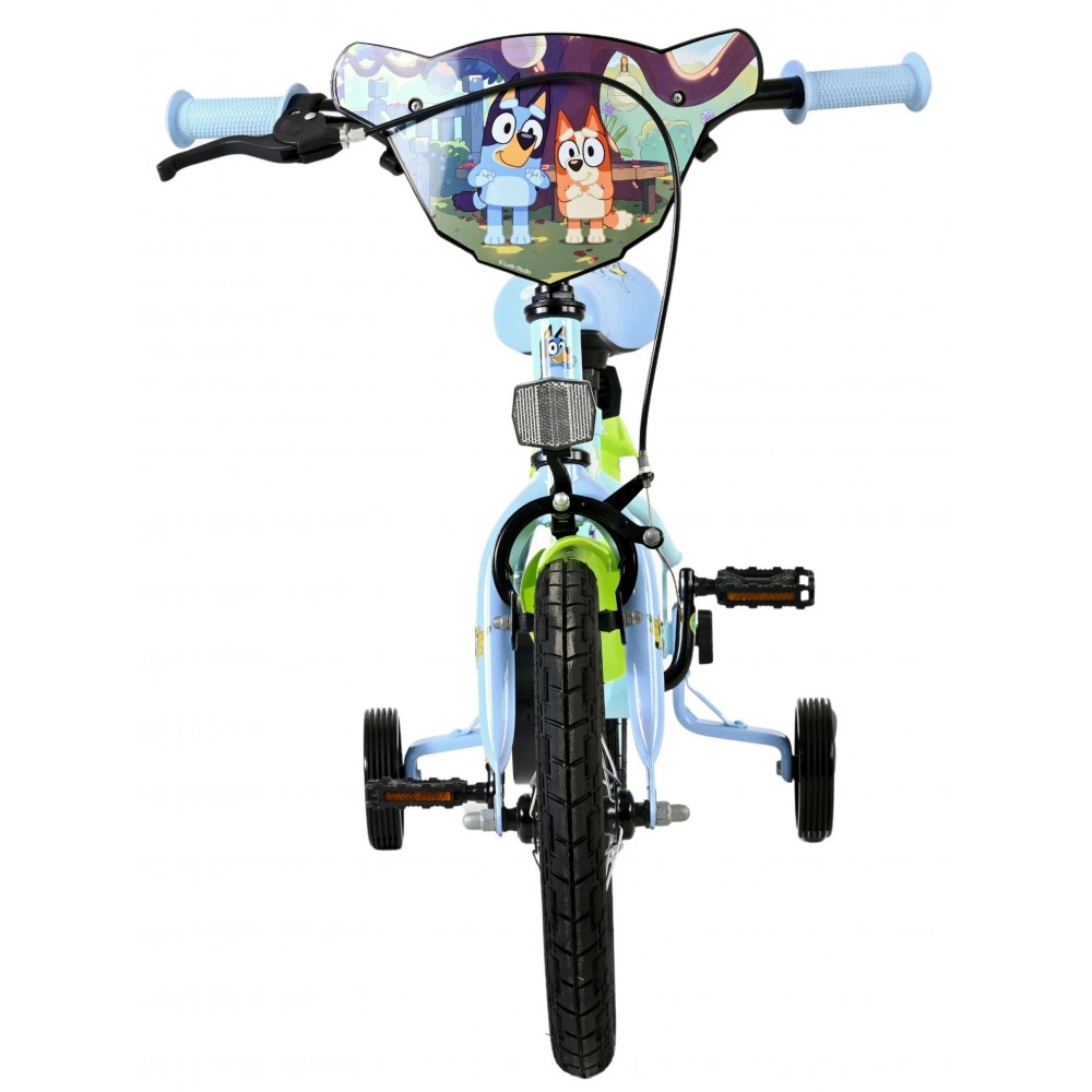 Voor kleine avonturiers is er de 14 inch Bluey kinderfiets van Volare – dé ideale fiets voor kinderen die klaar zijn om zelfverzekerd de wereld te verkennen. De vrolijke lichtblauwe kleur in combinatie met de opvallende neon groene spatborden geeft deze fiets een speelse en frisse uitstraling, perfect passend bij de energieke stijl van Bluey.