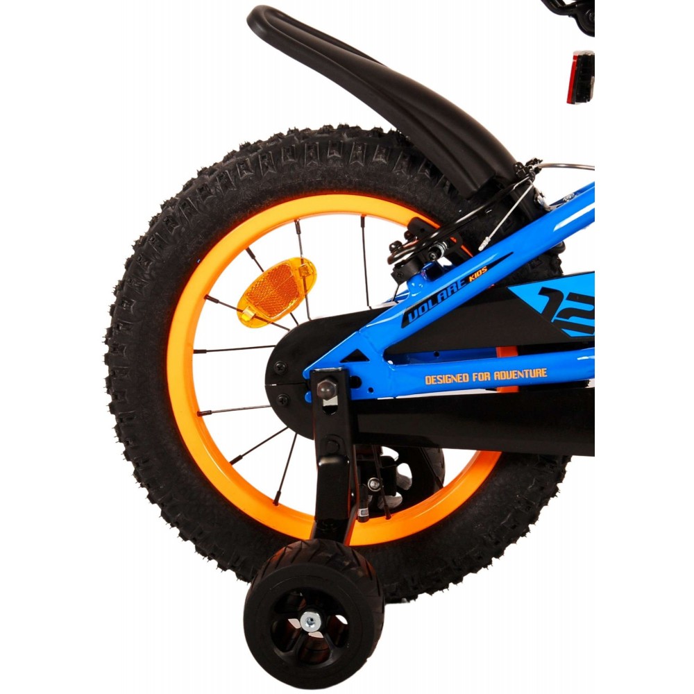 Veiligheid staat voorop! Daarom heeft deze gave fiets geen terugtraprem maar twee handremmen, een gesloten kettingkast en afneembare zijwieltjes. Daarnaast heeft de fiets een leuke bel. Ook aan het comfort is gedacht. De mooie blauwe Volare fiets met zwarte accenten heeft een extra licht aluminium frame, een luxe zacht zadel, een strak frame dat wel tegen een stootje kan, en extra lange spatborden om al het vuil tegen te houden. Om zo lang mogelijk van de fiets te kunnen genieten heeft de fiets een extra lange zadelpen waardoor de fiets nóg langer meegroeit. Wordt geleverd inclusief al het montagemateriaal dat nodig is om de fiets in elkaar te zetten!
