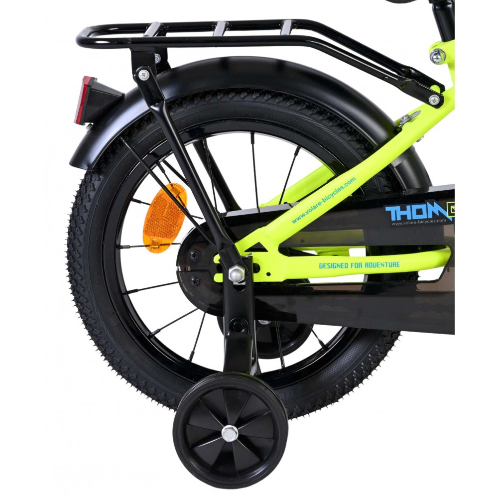 De Volare Thombike 14 inch in blauw met gele accenten is een stoere kinderfiets met een sportieve uitstraling, perfect om veilig en met vertrouwen te leren fietsen. Dankzij de stevige afwerking en het opvallende design is dit een echte favoriet voor jonge rijders.