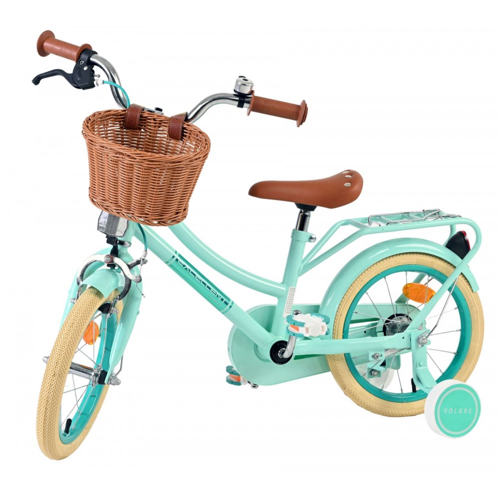 Veiligheid staat voorop! Daarom heeft deze gave fiets een handrem en terugtraprem, afneembare zijwieltjes en een gesloten kettingkast. Daarnaast heeft de fiets reflectoren achter en een leuke bel. Ook aan het comfort is gedacht. De mooie groene Volare fiets heeft een handige achterdrager, een luxe zacht zadel en een handig rieten mandje. Om zo lang mogelijk van de fiets te kunnen genieten zijn het zadel en stuur in hoogte verstelbaar. Wordt geleverd inclusief al het montagemateriaal dat nodig is om de fiets in elkaar te zetten!