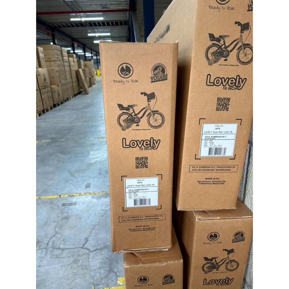 De Volare Lovely 18 inch kinderfiets is dé fiets waar ieder meisje van droomt. De vlinders en bloemen op het frame en zadel maken het design van de rode fiets helemaal af. Om vaart te kunnen minderen heeft de fiets zowel een handrem als een terugtraprem. Ter bescherming van de kleine vingertjes heeft de fiets een gesloten kettingkast. Met de fietsbel kun je laten weten dat je de hoek om komt. Om spulletjes mee te kunnen nemen heeft de fiets een prachtig kunststof mandje.