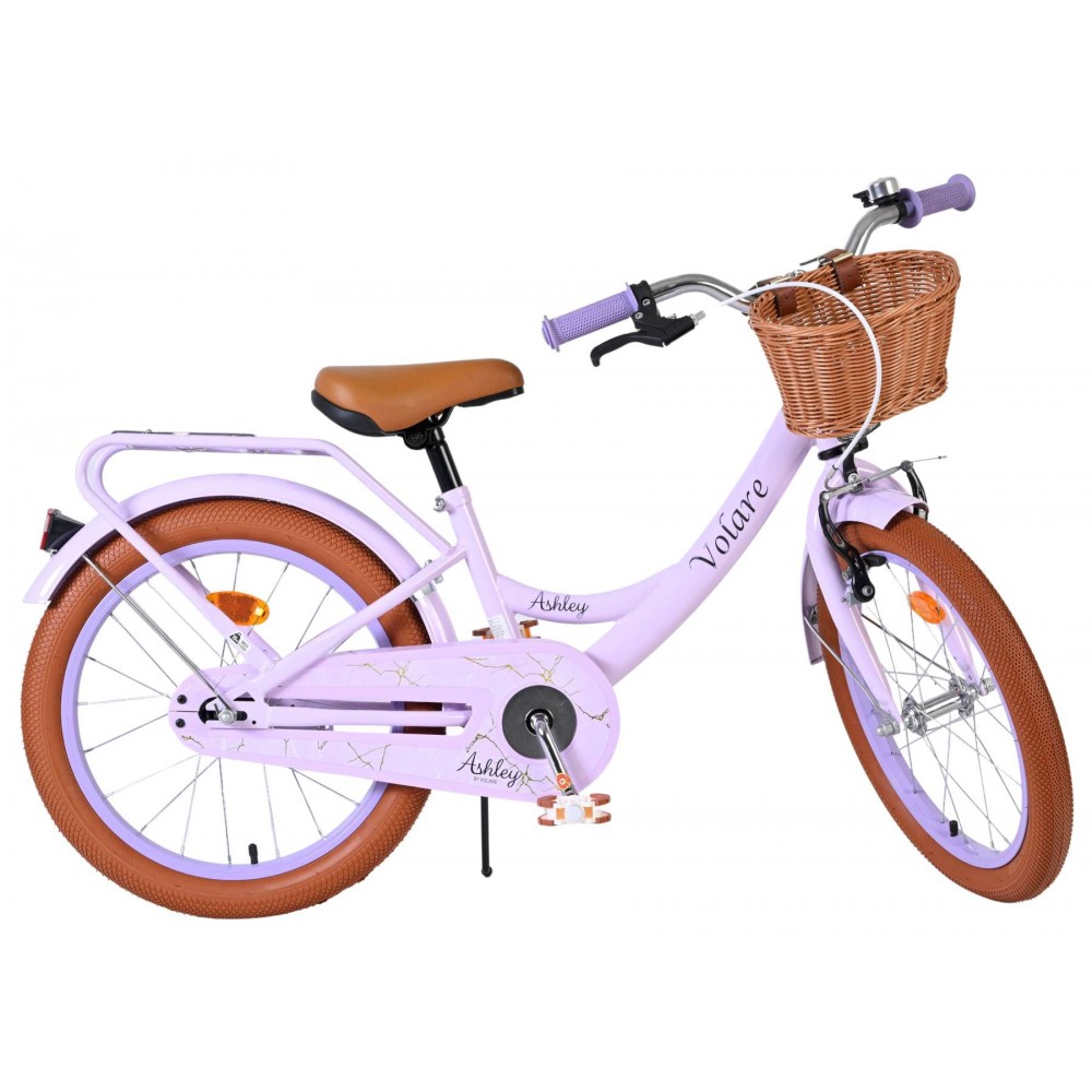 De Volare Ashley 18 inch lila kinderfiets biedt een comfortabele en veilige fietservaring en is perfect voor kinderen van ongeveer vijf tot zeven jaar die klaar zijn voor het volgende avontuur.