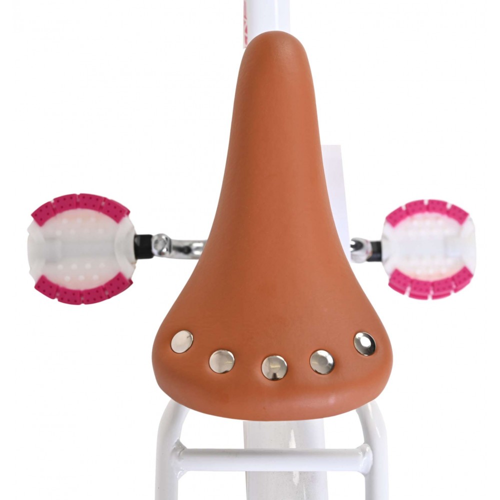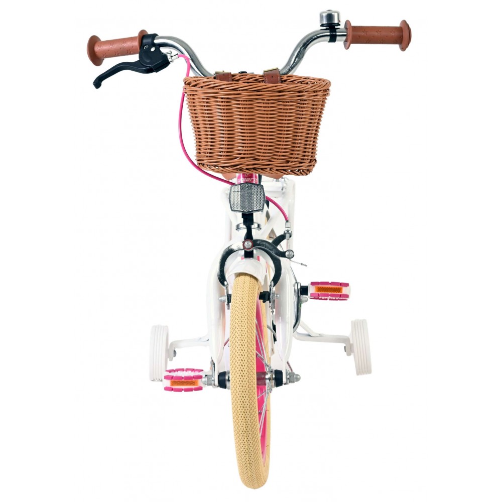 Veiligheid staat voorop! Daarom heeft deze gave fiets een handrem en terugtraprem, afneembare zijwieltjes en een gesloten kettingkast. Daarnaast heeft de fiets reflectoren voor en achter en een leuke bel. Ook aan het comfort is gedacht. De mooie witte Volare fiets heeft een handige achterdrager, een luxe zacht zadel en een handig rieten mandje. Om zo lang mogelijk van de fiets te kunnen genieten zijn het zadel en stuur in hoogte verstelbaar. Wordt geleverd inclusief al het montagemateriaal dat nodig is om de fiets in elkaar te zetten!